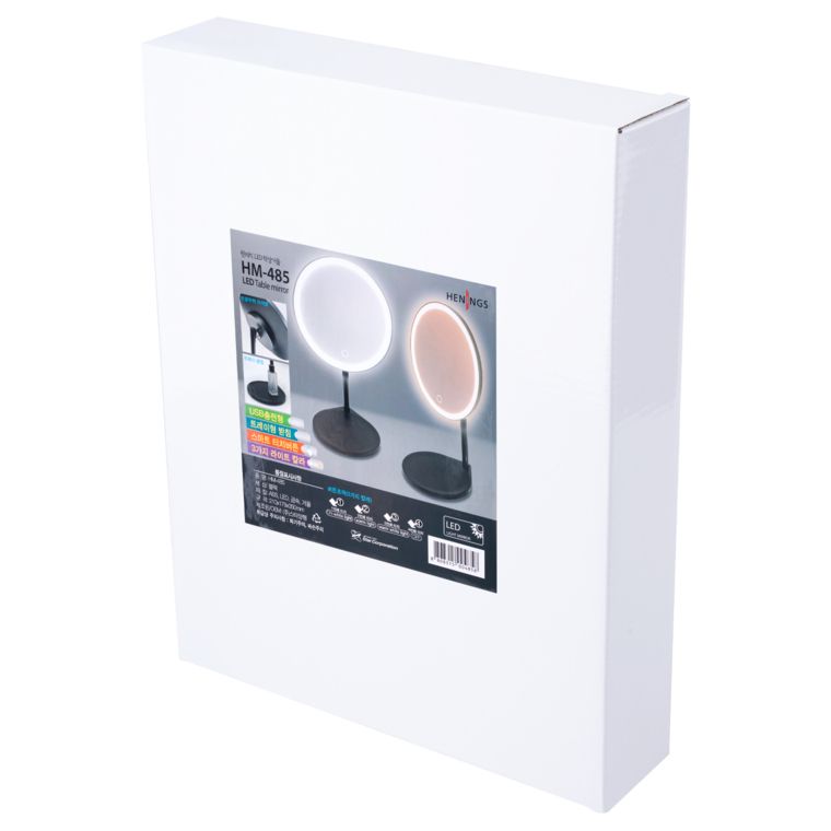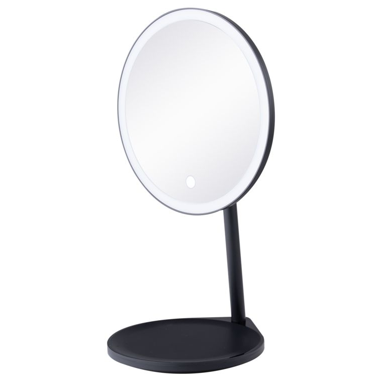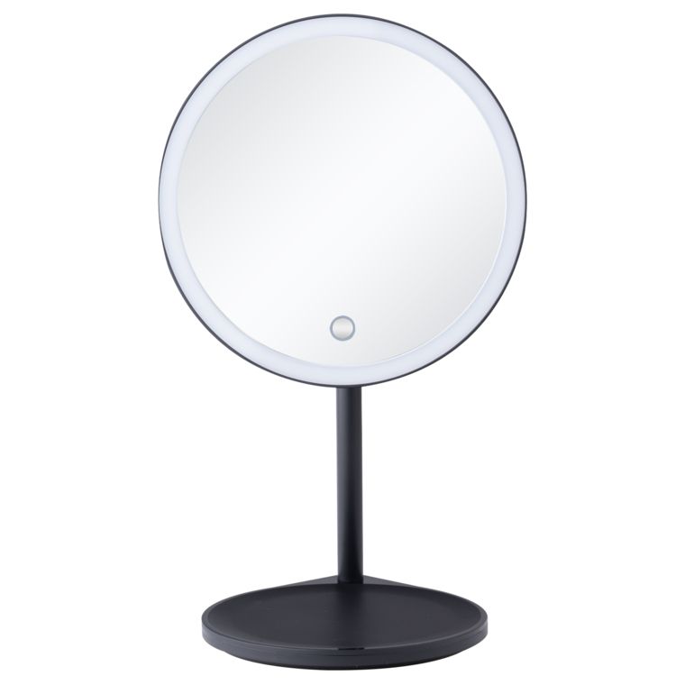 Jednostrano kozmetičko ogledalo elegantnog dizajna. Svetlo ogledala moguće je podešavati u tri različite boje: hladno belu, toplo belu ili prirodno belu, kratkim pritiskom kružnog senzora na samom ogledalu. Može se podešavati i intenzitet svetla dužim pritiskom na isto polje. Ogledalo je pričvršćeno za postolje pomoću magnetne kugle koja se rotira za 360°. Na zadnjem delu ogledala nalazi se baterija koja se puni preko mikro USB-a.