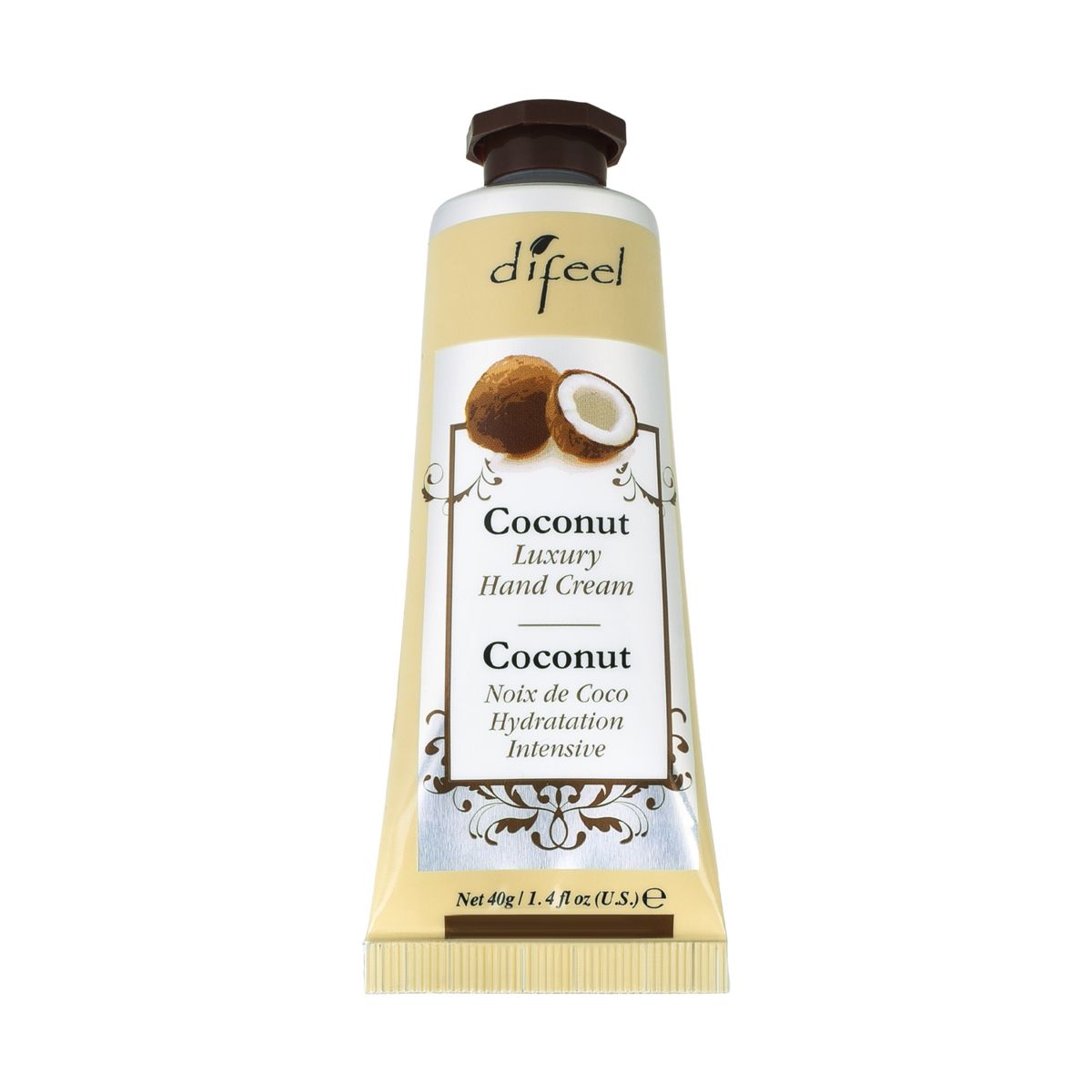Krema za hidrataciju ruku sa ekstraktom kokosa, dobijena kombinacijom vitamina E, prirodnog ulja i biljnih ekstrakata. Sadrži aktivne sastojke hijaluronske kiseline, kakaa, suncokreta, pčelinjeg voska i koprive, koji neguju kožu ruku. Formula omekšava spoljašnje slojeve kože, prodire u dermalni deo i rukama daje potpunu hidrataciju.