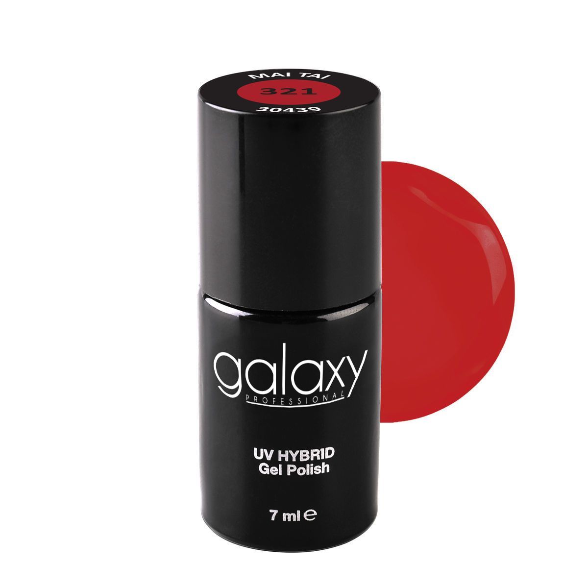 Galaxy UV/LED trajni lak je inovativna formula soak off gela. Visoka pigmentacija stabilne formule, omogućava postojanost i sjaj na noktima bez pucanja, krzanja i odvajanja. Galaxy nudi revolucionarne trajne lakove čiju paletu boja čine klasične i moderne nijanse. Zbog svojih specifičnih karakteristika, kao što su samonivelišuća formula i srednja viskoznost, pogodni su za upotrebu na prirodnim noktima, noktima izrađenim u gel i akril tehnici, kao i za svaki tip Nail Art-a.   Kako bi se izbeglo “gužvanje” kod tamnijih nijansi trajnih lakova (crne, bele, tamno zelene, tamno ljubičaste), preporuka je da se nanose u dva ravnomerna tanka sloja i suše puno vreme sušenja. Posebno obratiti pažnju ukoliko se koristi UV lampa jačine 36w. Vreme sušenja u LED/UV lampi 30 sekundi Vreme sušenja u UV lampi 2 minute  Crvenonarandžasta nijansa Napomena: Zbog različitih uređaja i kalibracije monitora, boja koju vidite na svom uređaju može se minimalno razlikovati od nijanse u prirodi. Na bazu osušenu u lampi naneti tanak sloj boje izbegavajući deo oko zanoktice i zatvoriti slobodnu i bočne ivice Osušiti u lampi  Ponoviti postupak Nokat zatvoriti završnim sjajem Fiksirati Cleanser-om Urethane Acrylate Oligomer, Di-HEMA Trimethylhexyl Dicarbamate, HEMA, Isobomyl Methacrylate, Hexamethylene Diacrylate, Polyethylene Terephthalate, Synthetic Fluorphlogpite, Tin Oxide, CI 74260, CI 74160, CI 12490, CI 15850, CI 73360, CI 60725, CI 15980, CI 15985, CI 77266, CI 42735, Acrylated Amine Synergist,  CI 77891, Hydroxycycylohexyl Phenyl Keton, Phenyldimethoxyacetophenone, Benzyl Isopropanol, Benzophenone, Ethyl Trimethylbezoyl Phenylphossphinate, Nitrocellulose, Silica